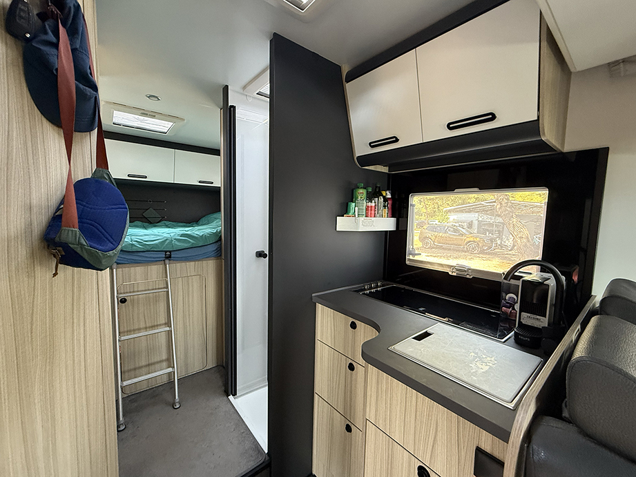 Dank der großzügigen Abmessungen konnten wir uns im Wohnmobil problemlos bewegen. Wir hatten überraschend viel Stauraum für unsere Kleidung, Toilettenartikel, Spiele und andere Urlaubsutensilien. Dieser Sun Living hat so viele Schränke! Wir bewahrten unsere Schuhe und Hausschuhe in dem speziellen Schuhfach unter der Seitenbank auf. Unsere Kleidung wurde in den Schränken im hinteren Bereich verstaut, die Kleidung der Jungs in den Schränken auf beiden Seiten des Gangs. Das Badezimmer bietet viel Platz für Duschgel, Shampoo, Sonnencreme und vieles mehr. All dieser Stauraum ist einer der absoluten Vorteile dieses Wohnmobils. Auch in der Garage konnten wir viel unterbringen: von Möbeln bis hin zu Wasserkanistern. Und dann war da noch der Wäscheständer, den wir mit der gesamten Wäsche darauf in die Garage gestellt haben, als wir losfuhren, damit wir ihn am nächsten Campingplatz wieder herausholen konnten.